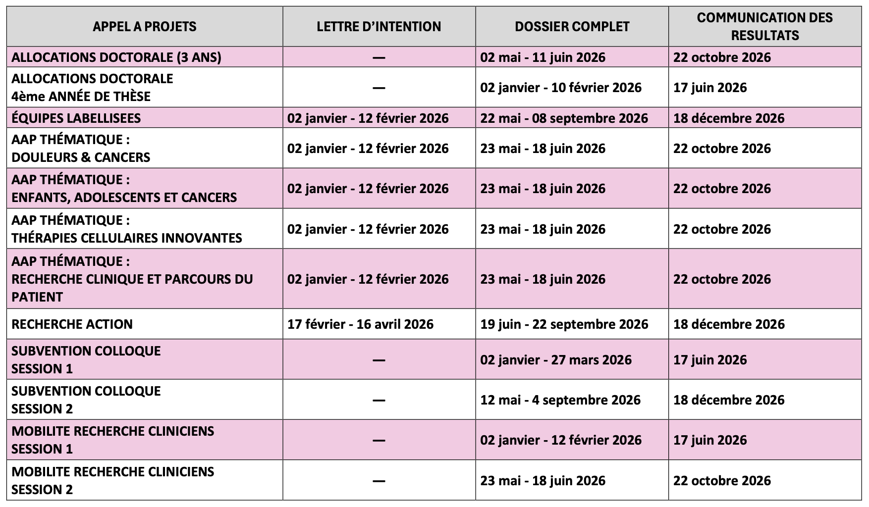 Le calendrier des appels à projets 2026 de la Ligue contre le cancer est disponible.